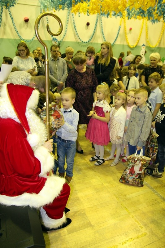 Choinka jak zwykle była wielkim przeżyciem dla najmłodszych uczniów. Wszyscy uczestnicy noworocznej zabawy zabrali ze sobą świetne humory i dali się porwać wesołym rytmom.