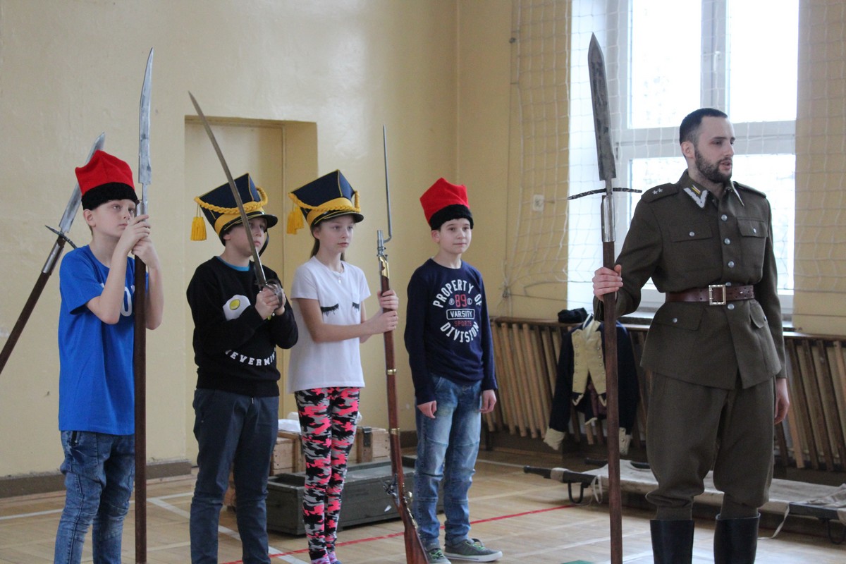 Grupa artystyczna "Rekonstrukto" zaprosiła uczniów kl. VIIB, VA, IVB, IVE, IIIA, IIA na pokaz historyczny "Ku niepodległej".