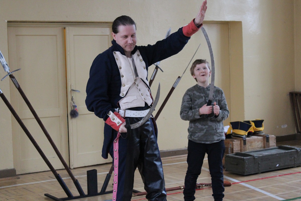 Grupa artystyczna "Rekonstrukto" zaprosiła uczniów kl. VIIB, VA, IVB, IVE, IIIA, IIA na pokaz historyczny "Ku niepodległej".