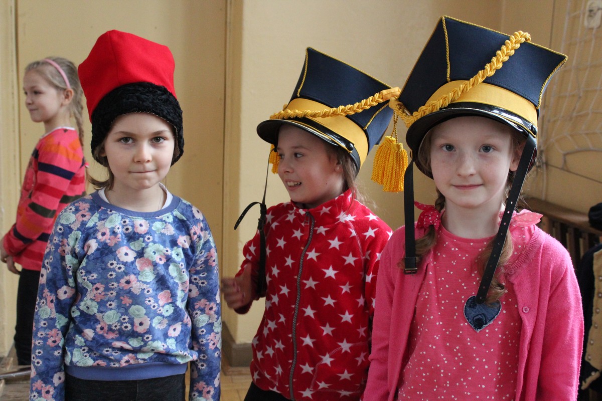 Grupa artystyczna "Rekonstrukto" zaprosiła uczniów kl. VIIB, VA, IVB, IVE, IIIA, IIA na pokaz historyczny "Ku niepodległej".