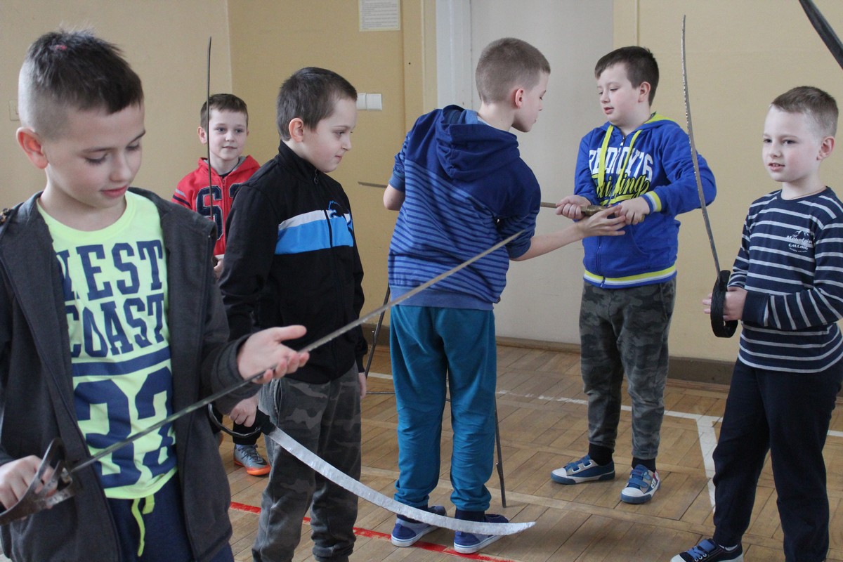 Grupa artystyczna "Rekonstrukto" zaprosiła uczniów kl. VIIB, VA, IVB, IVE, IIIA, IIA na pokaz historyczny "Ku niepodległej".