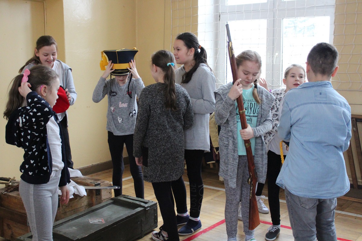Grupa artystyczna "Rekonstrukto" zaprosiła uczniów kl. VIIB, VA, IVB, IVE, IIIA, IIA na pokaz historyczny "Ku niepodległej".