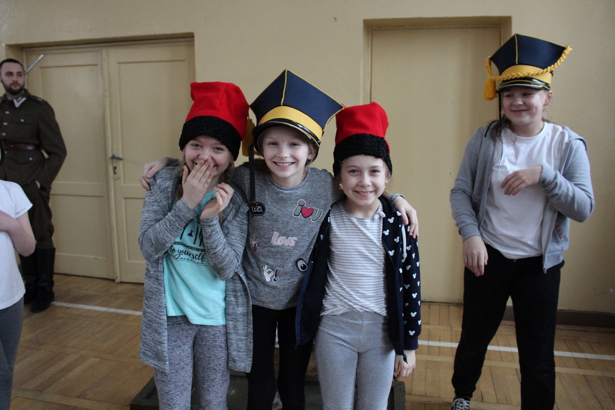 Grupa artystyczna "Rekonstrukto" zaprosiła uczniów kl. VIIB, VA, IVB, IVE, IIIA, IIA na pokaz historyczny "Ku niepodległej".