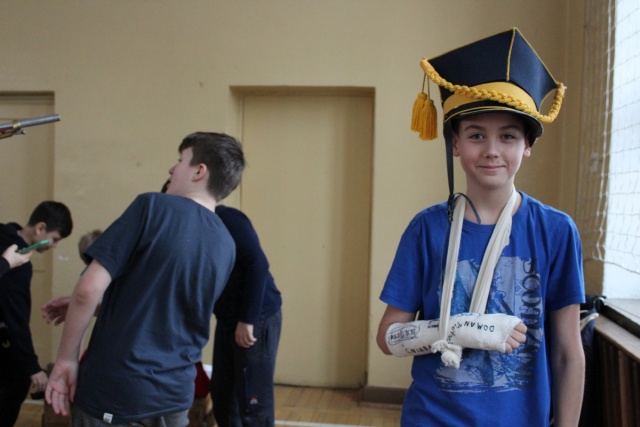 Grupa artystyczna "Rekonstrukto" zaprosiła uczniów kl. VIIB, VA, IVB, IVE, IIIA, IIA na pokaz historyczny "Ku niepodległej".
