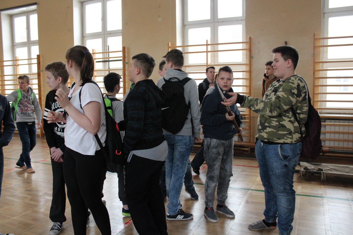Grupa artystyczna "Rekonstrukto" zaprosiła uczniów kl. VIIB, VA, IVB, IVE, IIIA, IIA na pokaz historyczny "Ku niepodległej".
