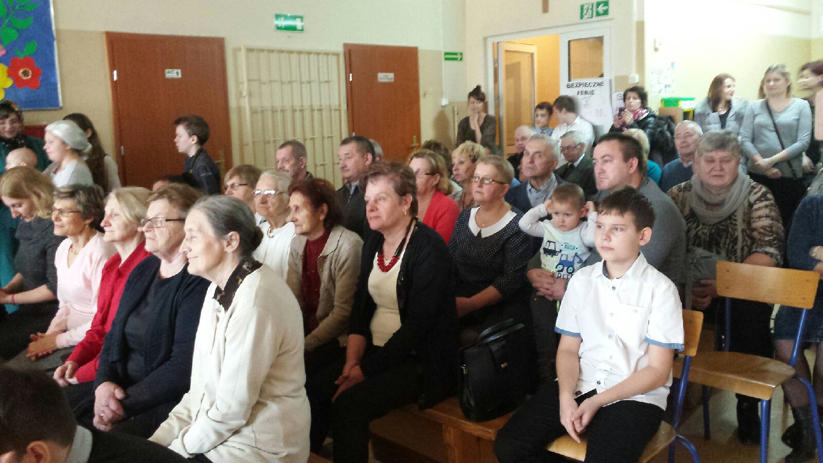 Babcie i dziadkowie licznie przybyli do szkoły, by posłuchać wierszy i piosenek oraz tańców w wykonaniu swoich wnucząt.