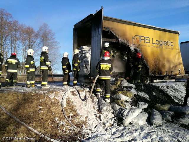 19 marca na drodze wojewódzkiej nr 627 doszło do pożaru przyczepy samochodu ciężarowego, przewożącego workowany węgiel drzewny.