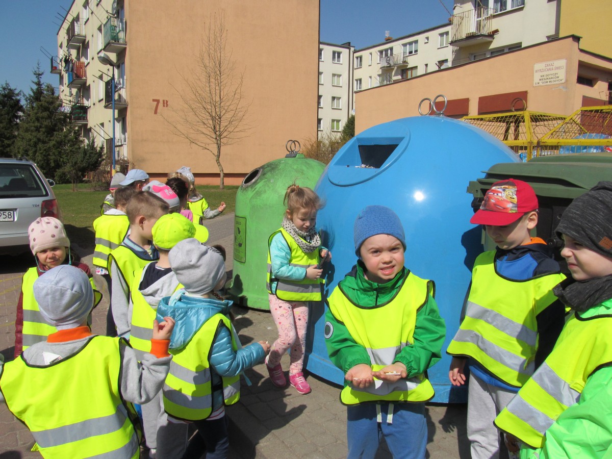 Przedszkolaki udali się do pobliskiego lasu aby go uporządkować, oczywiście zaopatrzyli się w niezbędne akcesoria typu gumowe rękawiczki i worki na śmieci.