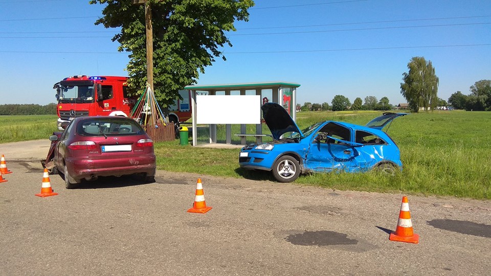 Cztery osoby w szpitalu po zderzeniu Lanosa z Corsą (29.05.2018) - Zdjęcie 1/7