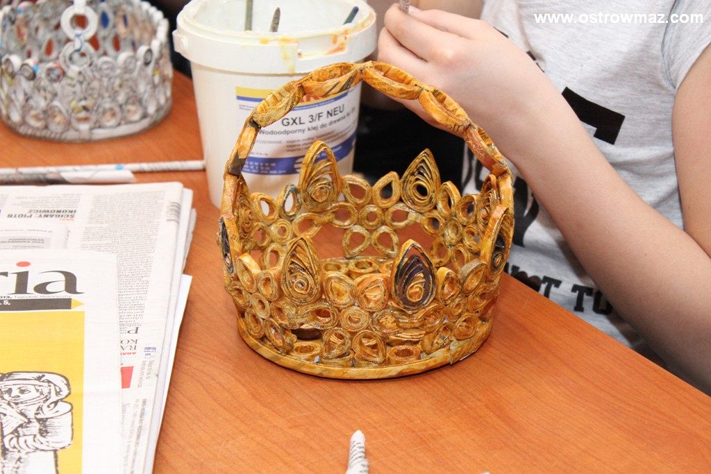 Czwartego dnia ferii dzieci wraz z Miejskim Domem Kultury czytały wspólnie baśnie braci Grimm oraz majstrowały przy wiklinach z papieru.