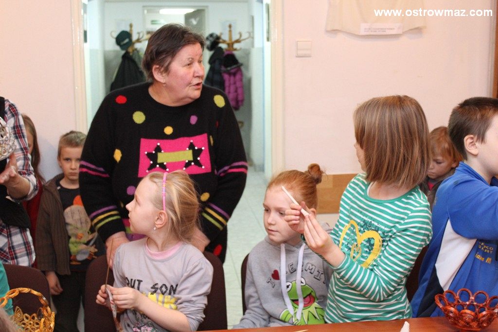 Czwartego dnia ferii dzieci wraz z Miejskim Domem Kultury czytały wspólnie baśnie braci Grimm oraz majstrowały przy wiklinach z papieru.