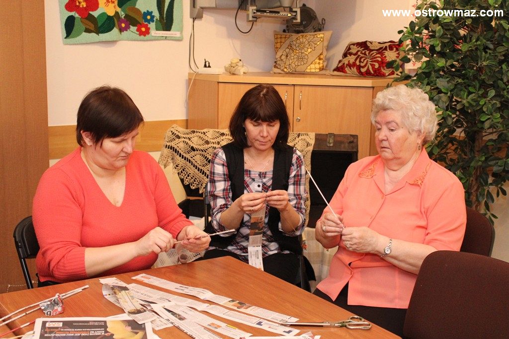 Czwartego dnia ferii dzieci wraz z Miejskim Domem Kultury czytały wspólnie baśnie braci Grimm oraz majstrowały przy wiklinach z papieru.