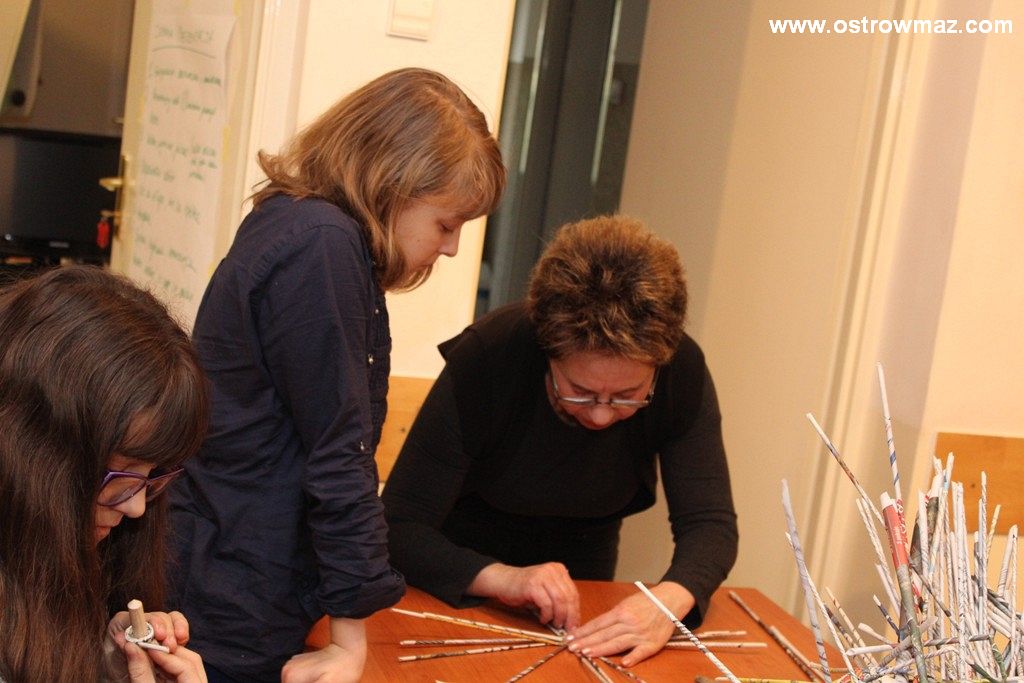 Czwartego dnia ferii dzieci wraz z Miejskim Domem Kultury czytały wspólnie baśnie braci Grimm oraz majstrowały przy wiklinach z papieru.