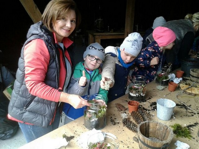 czniowie uczestniczyli w warsztatach plastycznych. Mogli samodzielnie ułożyć roślinną kompozycję, posadzić rośliny i ozdobić je. Ponadto dzieci obserwowały las i ogród. Określały nazwy drzew i leśnych krzewów. Uczyły się rozpoznawać warzywa na podstawie charakterystycznych korzeni i liści.