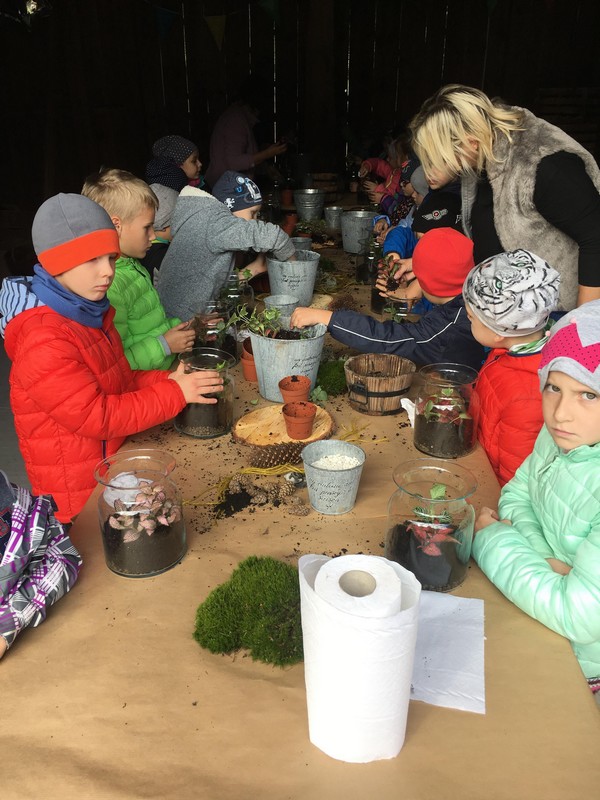 czniowie uczestniczyli w warsztatach plastycznych. Mogli samodzielnie ułożyć roślinną kompozycję, posadzić rośliny i ozdobić je. Ponadto dzieci obserwowały las i ogród. Określały nazwy drzew i leśnych krzewów. Uczyły się rozpoznawać warzywa na podstawie charakterystycznych korzeni i liści.