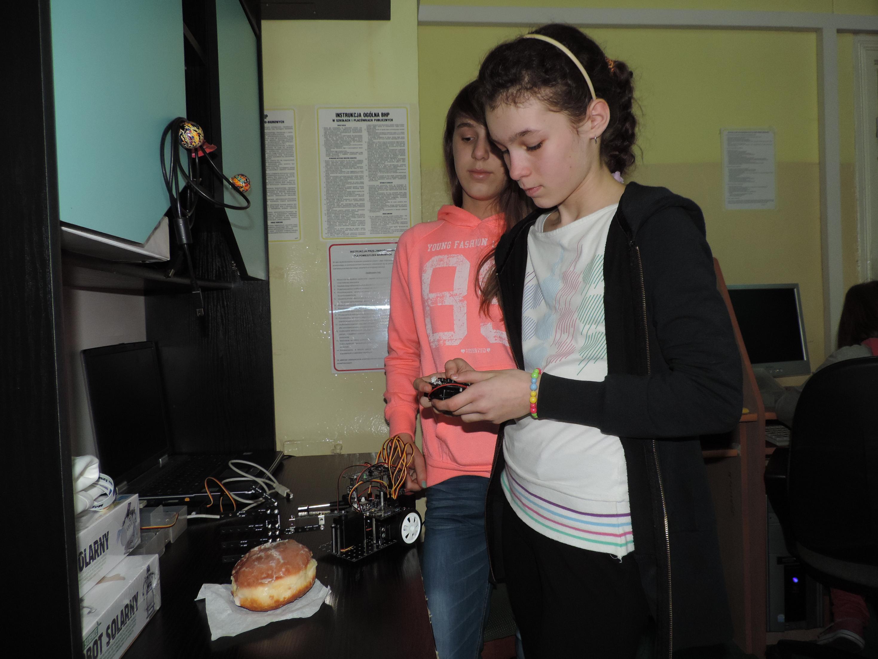 Zajęcia uczniów ze Szkoły Podstawowej w Glinie w ramach projektu "MÓJ PIERWSZY ROBOT?" zyskały nowy, słodki wymiar - do walki o pączki włączyły się niespodziewanie servoBoty.
