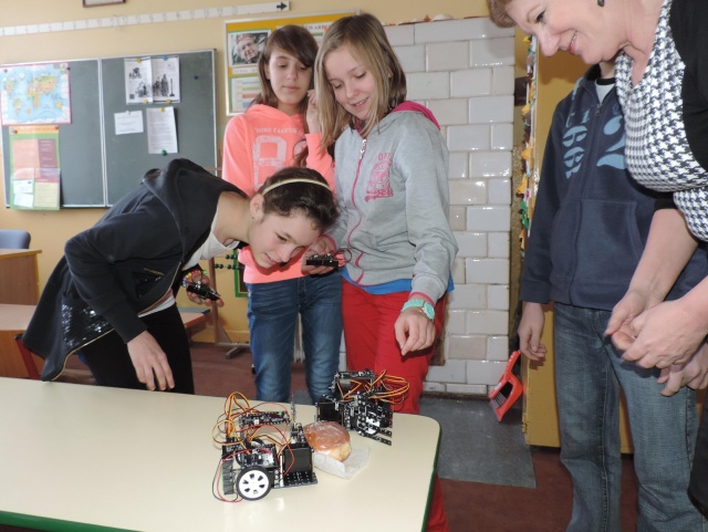 Zajęcia uczniów ze Szkoły Podstawowej w Glinie w ramach projektu "MÓJ PIERWSZY ROBOT?" zyskały nowy, słodki wymiar - do walki o pączki włączyły się niespodziewanie servoBoty.