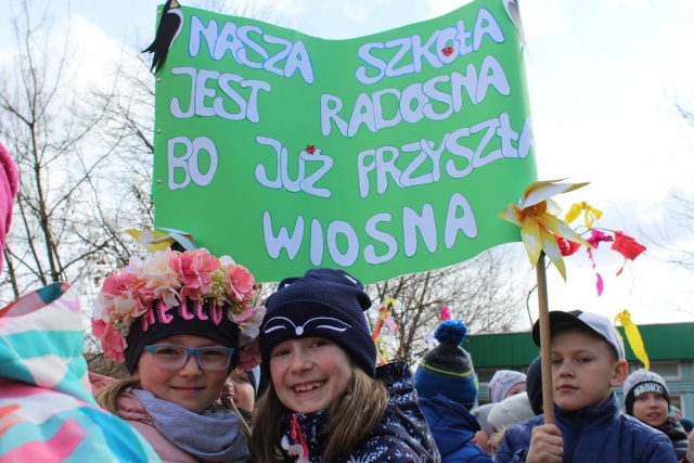 Nasza szkoła jest radosna, bo dziś przyszła wiosna - takie hasło towarzyszyło najmłodszym uczniom SP nr 1 w Pierwszy Dzień Wiosny.