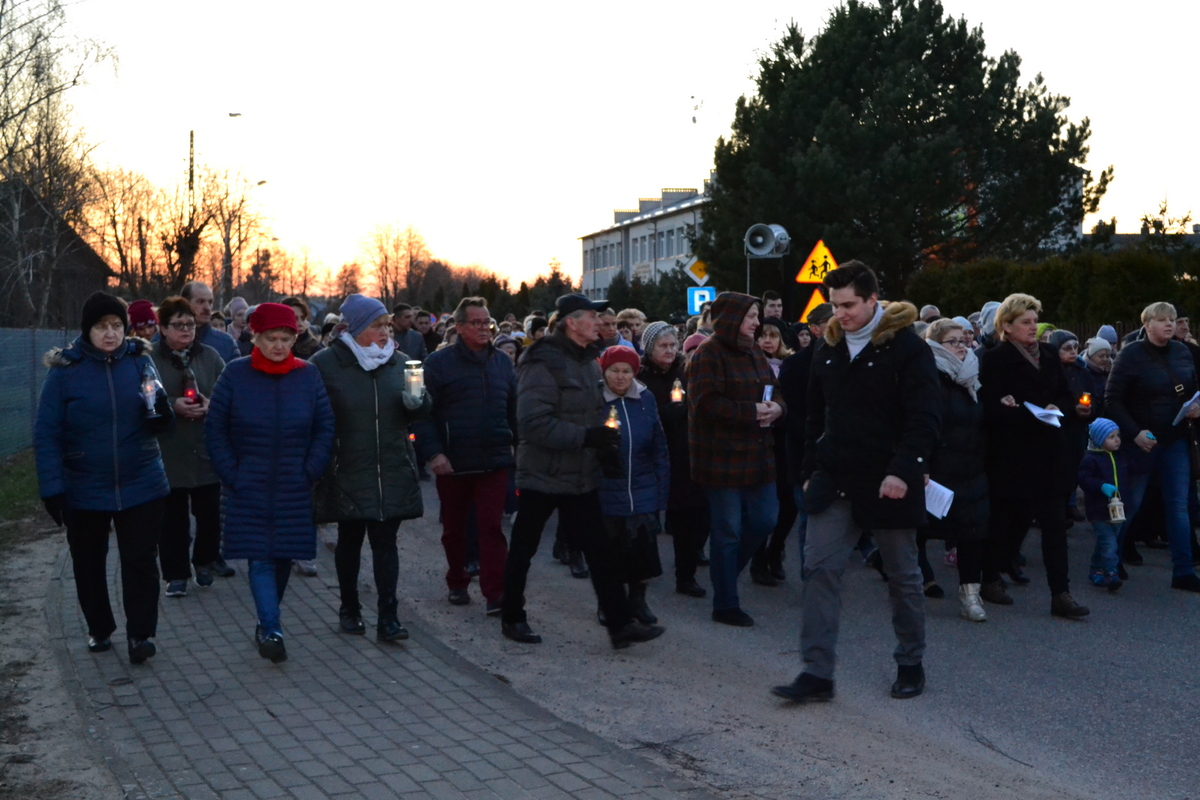 Zebrani w rocznicowy wieczór mieszkańcy miasta i gminy Brok zgromadzili się, aby wziąć udział w procesji.