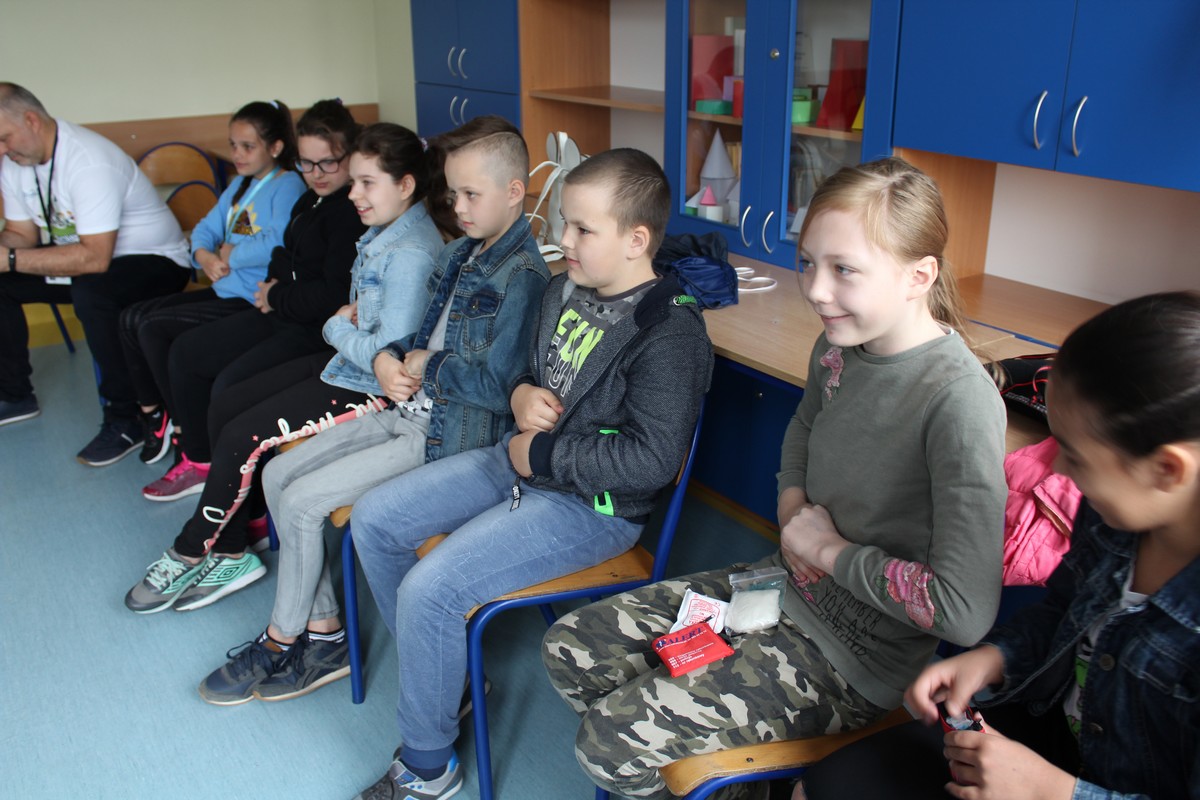 10 maja 2019 r. uczniowie klas IV Szkoły Podstawowej nr 1 uczestniczyli w zajęciach na temat bezpieczeństwa zorganizowanych przez jednego z rodziców oraz firmę Wedel.