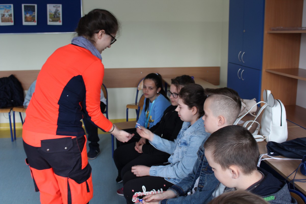 10 maja 2019 r. uczniowie klas IV Szkoły Podstawowej nr 1 uczestniczyli w zajęciach na temat bezpieczeństwa zorganizowanych przez jednego z rodziców oraz firmę Wedel.