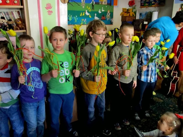 Dzieci z Miejskiego Przedszkola nr 1 obchodziły w poniedziałek Dzień Kobiet. Było mnóstwo wierszyków, piosenek oraz czerwonych i żółtych tulipanów.