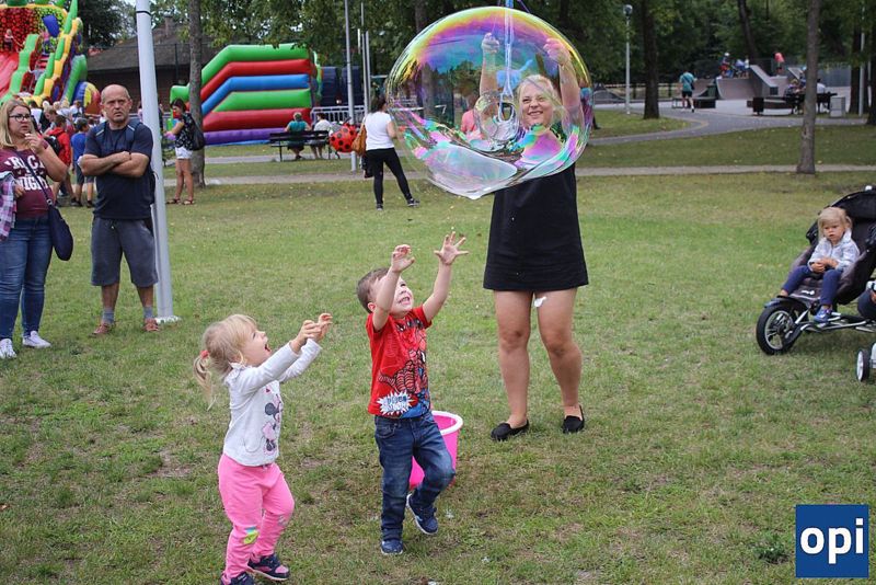 Największe bańki mydlane dzieci tworzyły przy pomocy rodziców i animatorów.