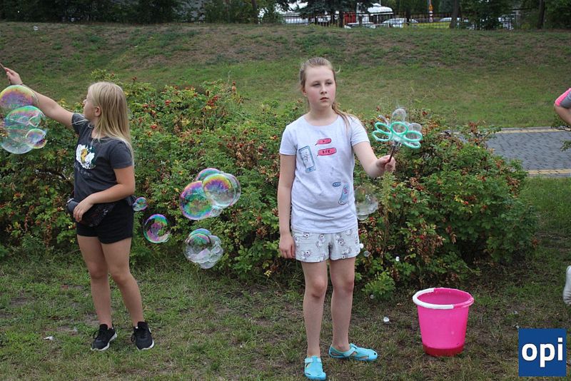 Największe bańki mydlane dzieci tworzyły przy pomocy rodziców i animatorów.