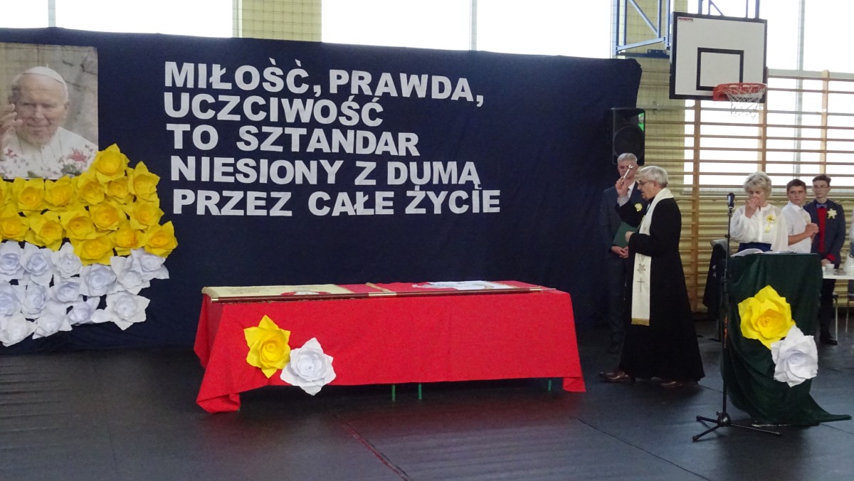 W życiu każdego człowieka są chwile ważne, niezwykłe i piękne, które zapadają na stałe w jego świadomości. Takim doniosłym wydarzeniem dla uczniów, rodziców, dyrekcji, grona pedagogicznego i pracowników Szkoły Podstawowej nr 2 im. Papieża Jana Pawła II w Ostrowi Maz. było poświęcenie sztandaru.