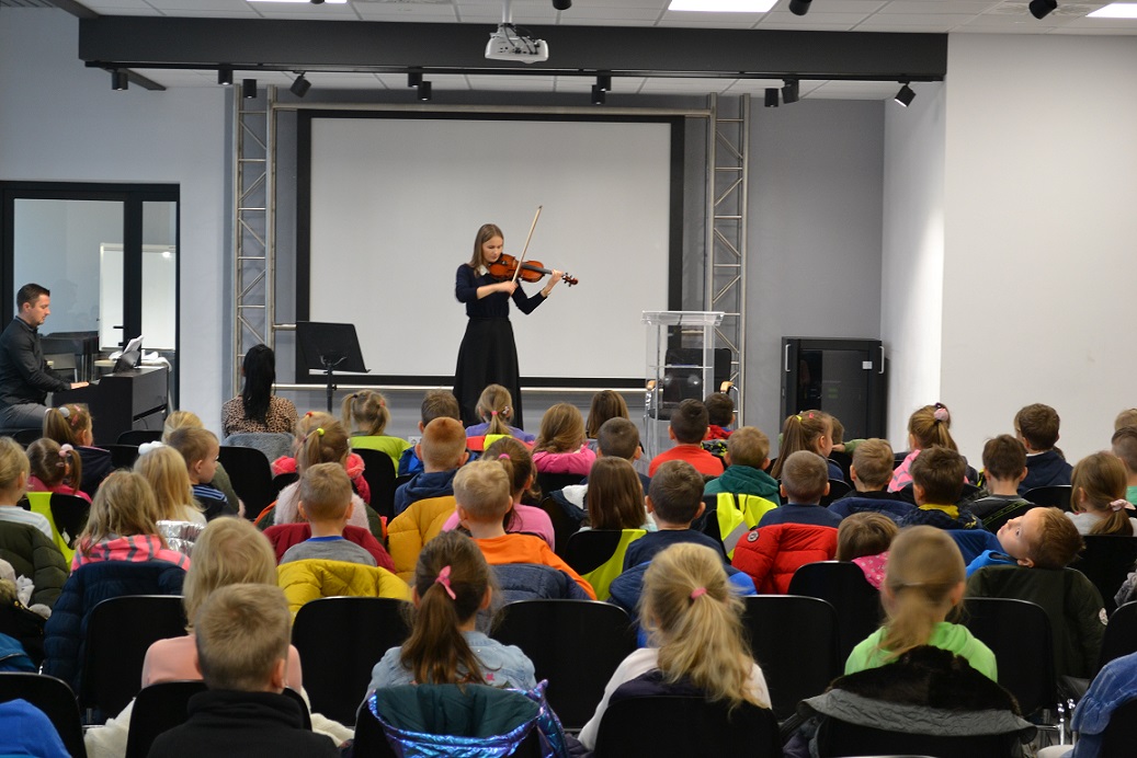 Artyści Filharmonii Kameralnej im. Witolda Lutosławskiego w Łomży wspólnie z uczniami ostrowskich szkół podstawowych oraz z sześciolatkami z miejskich przedszkoli uczcili 101. rocznicę odzyskania niepodległości.