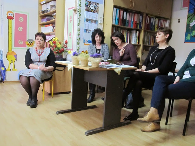 Rodzice wraz z nauczycielami i pracownikami Poradni Psychologiczno- Pedagogicznej spotkali się, aby porozmawiać o wczesnym wysyłaniu dzieci do szkoły.