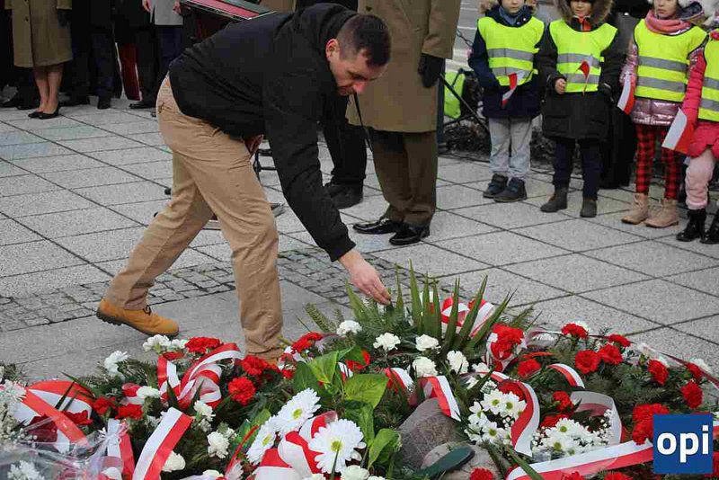 Uroczystości rozpoczęły się od złożenia przez delegacje kwiatów pod pomnikiem, który mieści się przy Zespole Szkół nr 1 w Ostrowi Mazowieckiej.