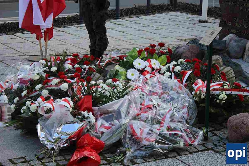 Uroczystości rozpoczęły się od złożenia przez delegacje kwiatów pod pomnikiem, który mieści się przy Zespole Szkół nr 1 w Ostrowi Mazowieckiej.