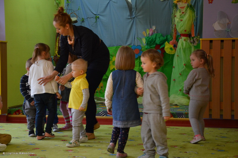 Przepiękna, iście wiosenna scenografia, mnóstwo balonów i kwiatów, a przede wszystkim uśmiechnięte twarze opiekunów i rodziców sprawiały, że dzieci szybko oswoiły się z publicznością, która w napięciu czekała na występ.