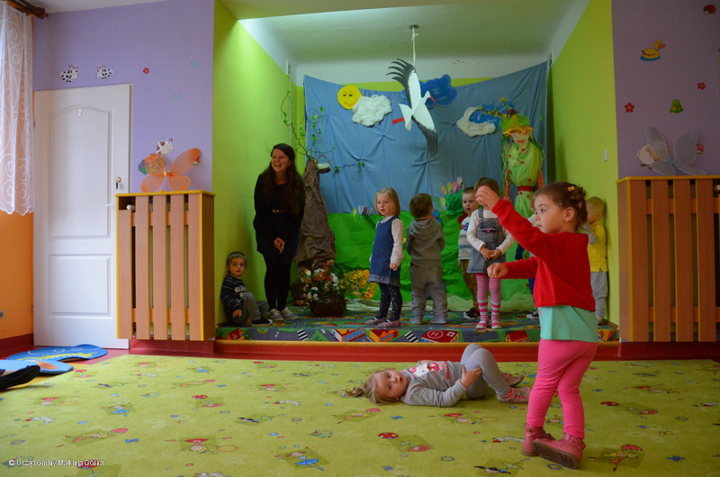 Przepiękna, iście wiosenna scenografia, mnóstwo balonów i kwiatów, a przede wszystkim uśmiechnięte twarze opiekunów i rodziców sprawiały, że dzieci szybko oswoiły się z publicznością, która w napięciu czekała na występ.