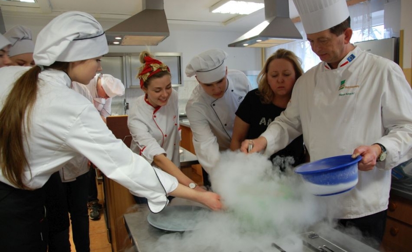 Młodzież w czasie szkolenia poznała historię i genezę kuchni molekularnej.