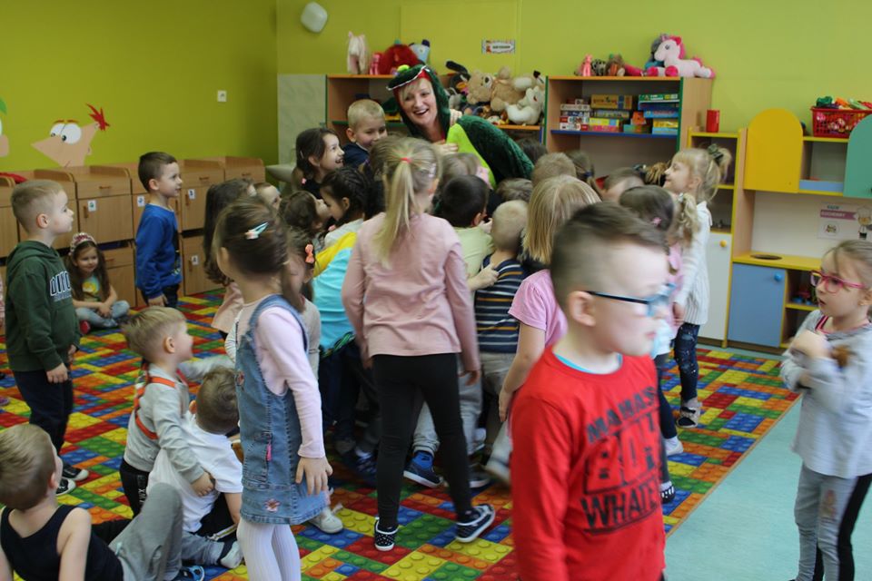 Przedszkole odwiedził dinozaur Dyzio.