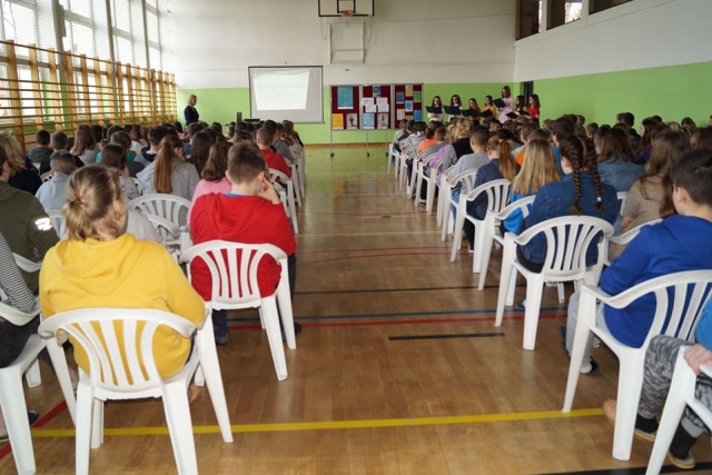 Uczniowie obejrzeli prezentację multimedialną, która dotyczyła zasad ochrony danych osobowych oraz bezpiecznego korzystania z Internetu.