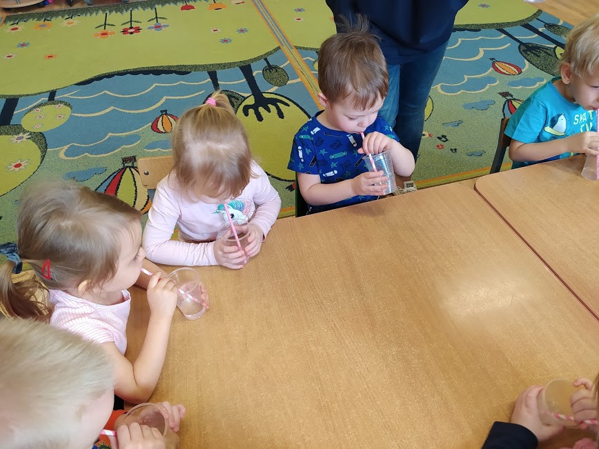 Dzieci usprawniały pracę aparatu artykulacyjnego, ćwicząc prawidłową wymowę samogłosek.