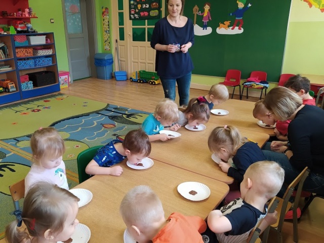 Dzieci usprawniały pracę aparatu artykulacyjnego, ćwicząc prawidłową wymowę samogłosek.