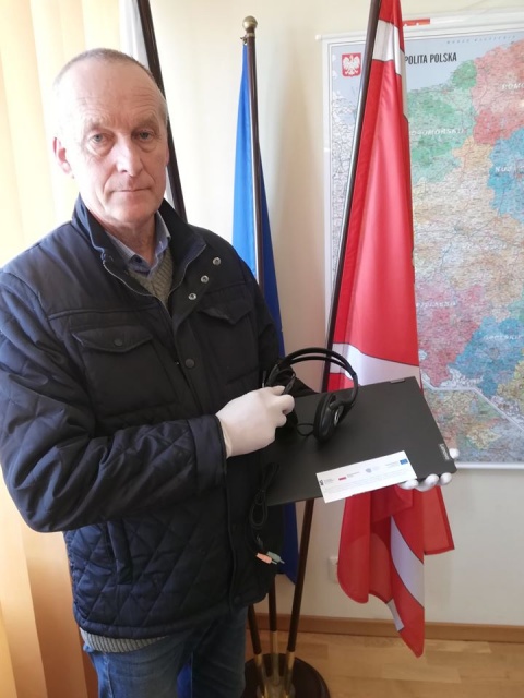 Dzięki pozyskanemu dofinansowaniu zakupiono niezbędny sprzęt do realizacji nauczania zdalnego, m.in.: 24 laptopy, myszki oraz zestawy słuchawek z mikrofonami.