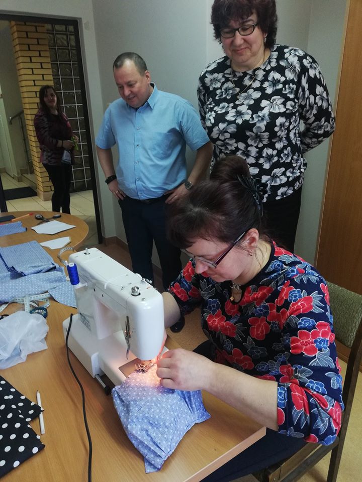 Od środy, 22 kwietnia, pracownicy Urzędu Gminy oraz Gminnego Ośrodka Pomocy Społecznej w Andrzejewie rozpoczęli szycie dwuwarstwowych maseczek.