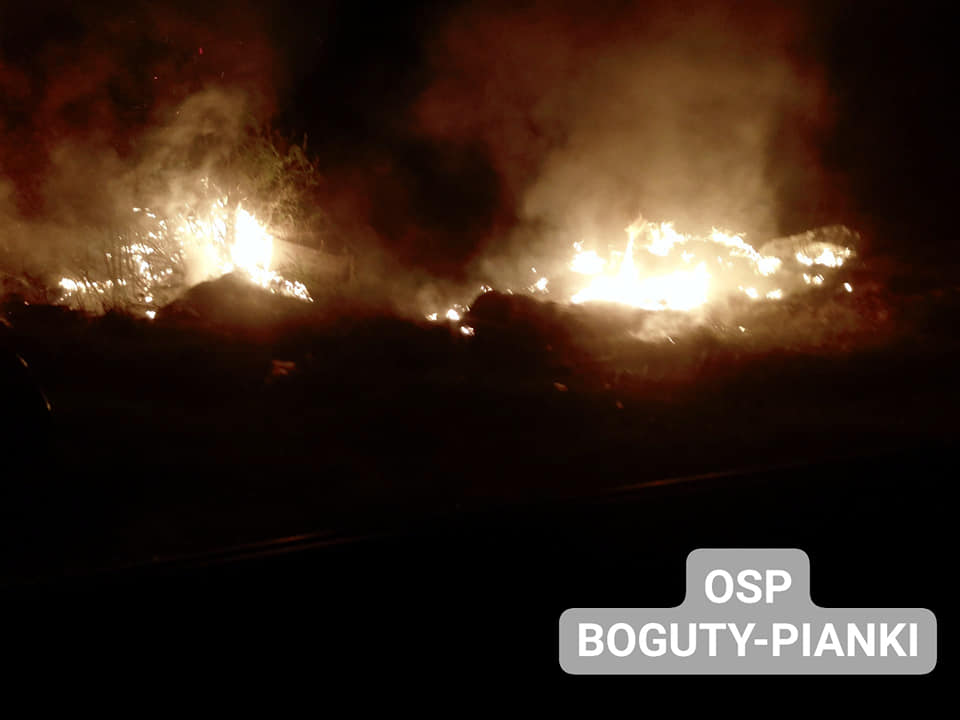 Pożarem były objęte śmieci, sterta folii, opon i pobliskie krzaki.