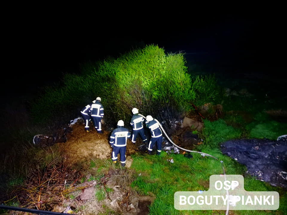 Pożarem były objęte śmieci, sterta folii, opon i pobliskie krzaki.