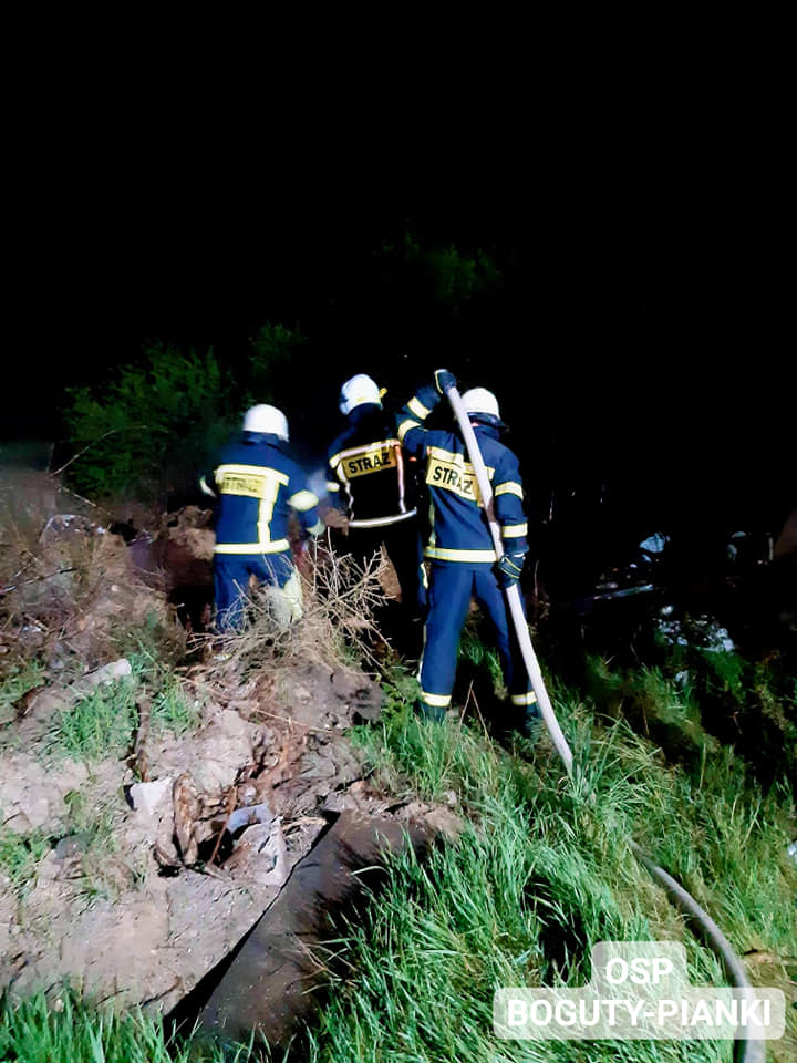 Pożarem były objęte śmieci, sterta folii, opon i pobliskie krzaki.