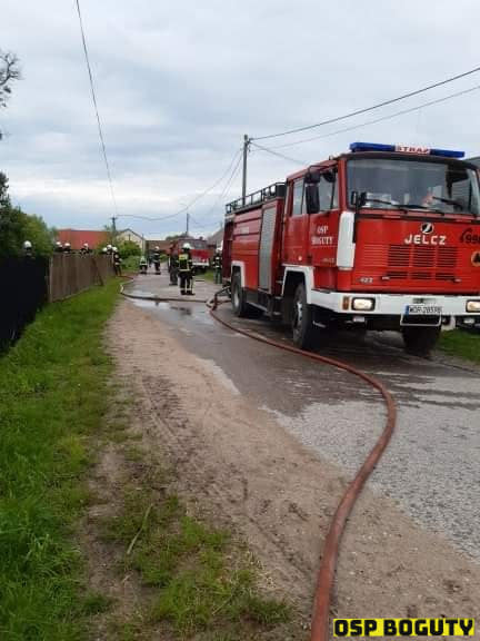 Działania strażaków polegały m.in. na zabezpieczeniu miejsca pożaru i podaniu prądów wody.