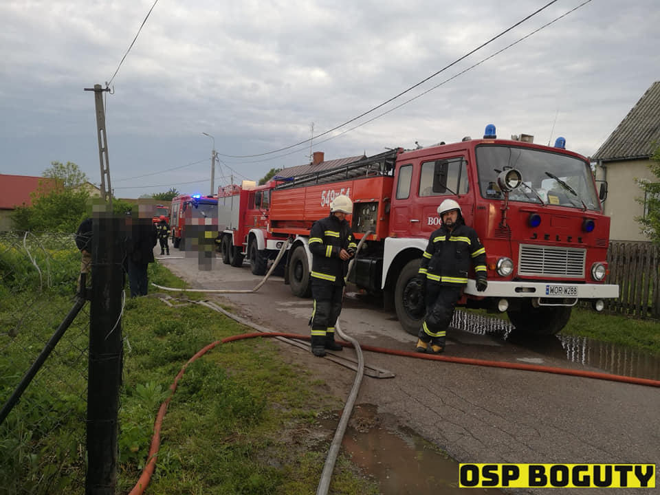 Działania strażaków polegały m.in. na zabezpieczeniu miejsca pożaru i podaniu prądów wody.
