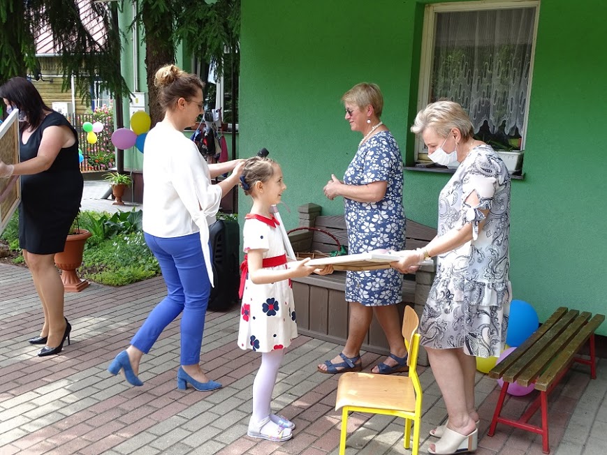 Dyrektor Małgorzata Zalewska powitała dzieci i rodziców, podsumowała lata, które dzieci spędziły w przedszkolu a także podziękowała rodzicom za współpracę.