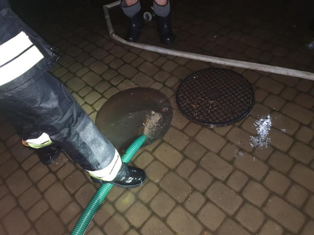 Działania strażaków polegały m.in. na wypompowywaniu wody z pomieszczeń.