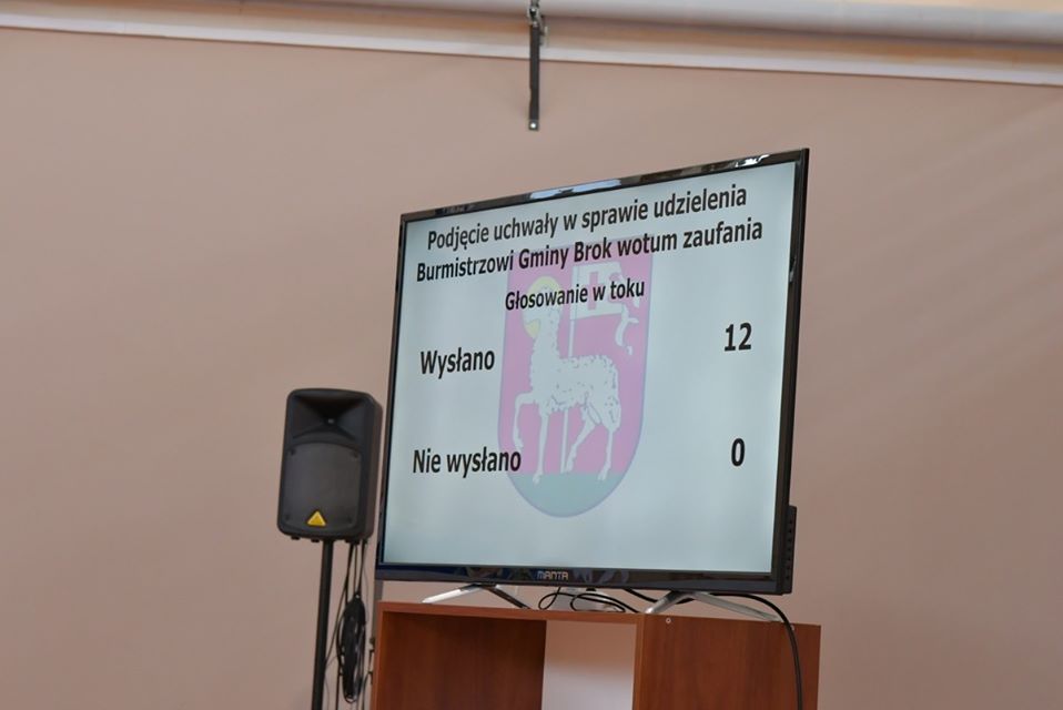 26 czerwca, podczas XI sesji Rady Gminy w Broku, adni udzielili jednogłośnie burmistrzowi Markowi Młyńskiemu wotum zaufania oraz absolutorium z tytułu wykonania budżetu.